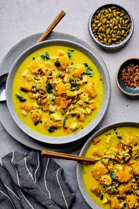 This Creamy Coconut Butternut Squash Chicken Soup is rich, cozy, and packed with flavor from roasted squash, tender chicken, and warm spices like curry and turmeric. Finished with creamy coconut milk and wilted spinach, it’s the perfect one-pot meal for fall and winter. Gluten-free, dairy-free, and totally satisfying! If you are craving something warm, nourishing, and comforting, you HAVE to try this Creamy Coconut Butternut Squash Chicken Soup. It’s hearty without being heavy, thanks to the velvety roast...